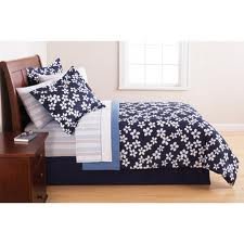 Floral Mainstays Bed in a Bag Bedding Set, Navy:Twin set includes: comforter (63" x 86"), flat sheet (66" x 96"), fitted sheet (39" x 75" x 12"), standard pillowcase (20" x 30") and sham (20" x 26")