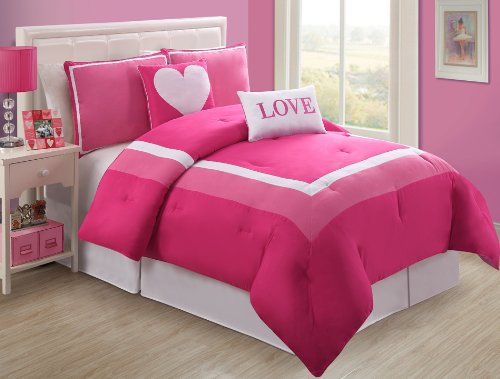 Read more 4 Pc Modern Pink and White Teen/girl Comforter Set, Twin Size Bedding, Bed in a Bag, By Plush C Collection