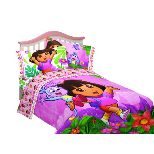 Dora The Explorer 4pc Run Skip Jump Twin Comforter & Sheet Set